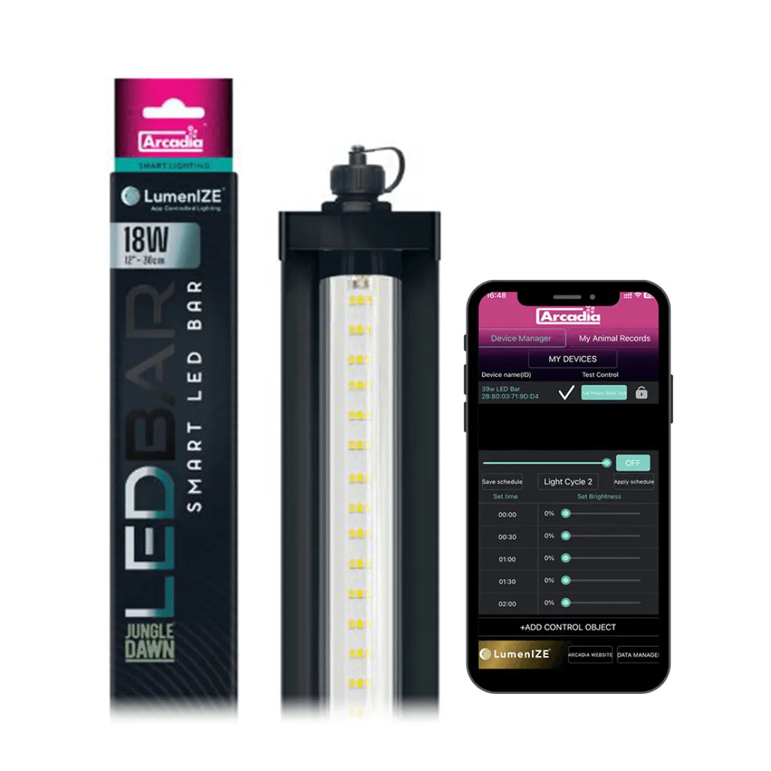 Créez facilement des periodes d'éclairage de l'aube jusqu'au crépuscule et oubliez les éclairages standards « marche/arrêt » assez agressifs pour les animaux timides. ProT5 avec LumenIZE® est esthetique, efficace et offre des mode de fluctuation lumineuse fluides vous permettant de contrôler la reproduction de la lumière du soleil aussi fidèlement que possible via l'application LumenIZE® (gratuite et facile à utiliser).